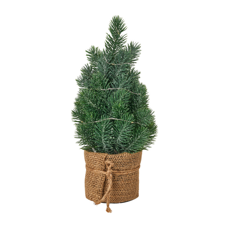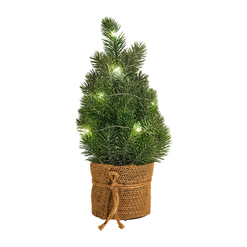 Kunstkerstboompje in pot - 10 led lampjes - 33 cm