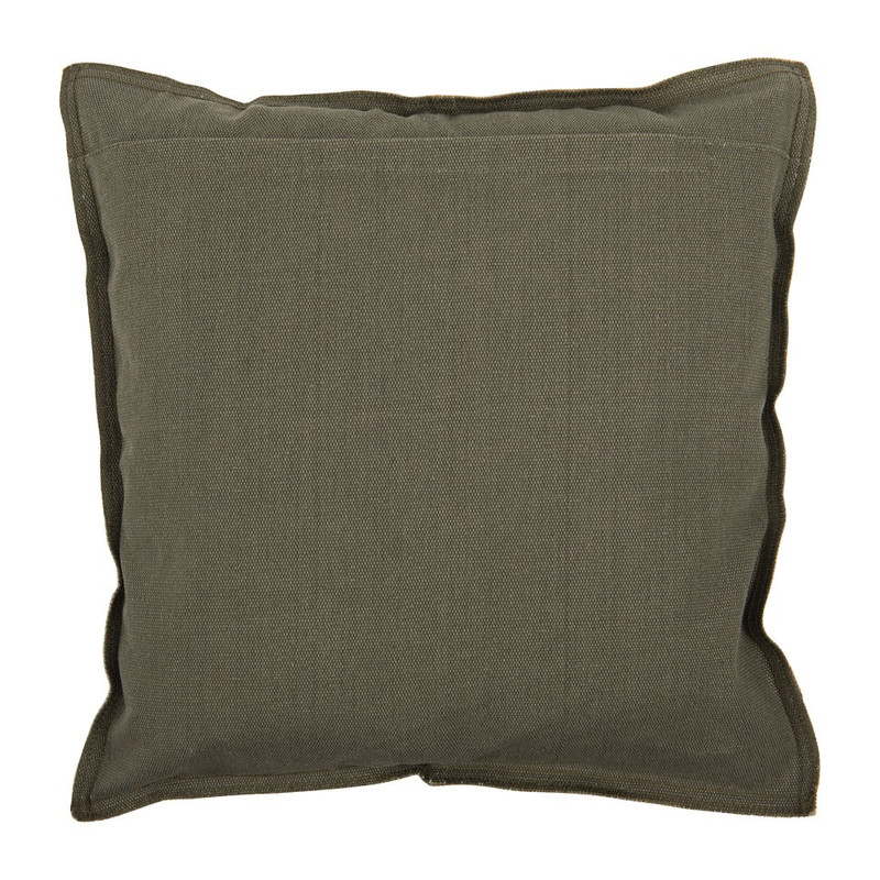 Dit robuuste kussen heeft, dankzij de olijfgroene canvas hoes, een stoere uitstraling. Het stevige kussen staat mooi in diverse woonstijlen. De olijfgroene kleur van het kussen is makkelijk te combineren met andere natuurlijke kleuren. De afneembare hoes is gemaakt van 60% polyester en 40% katoen en kan gewassen worden op 30 graden Celsius. De afmeting van het kussen is 45x45 cm. Het is leuk om dit kussen te combineren met andere accessoires in natuurtinten.