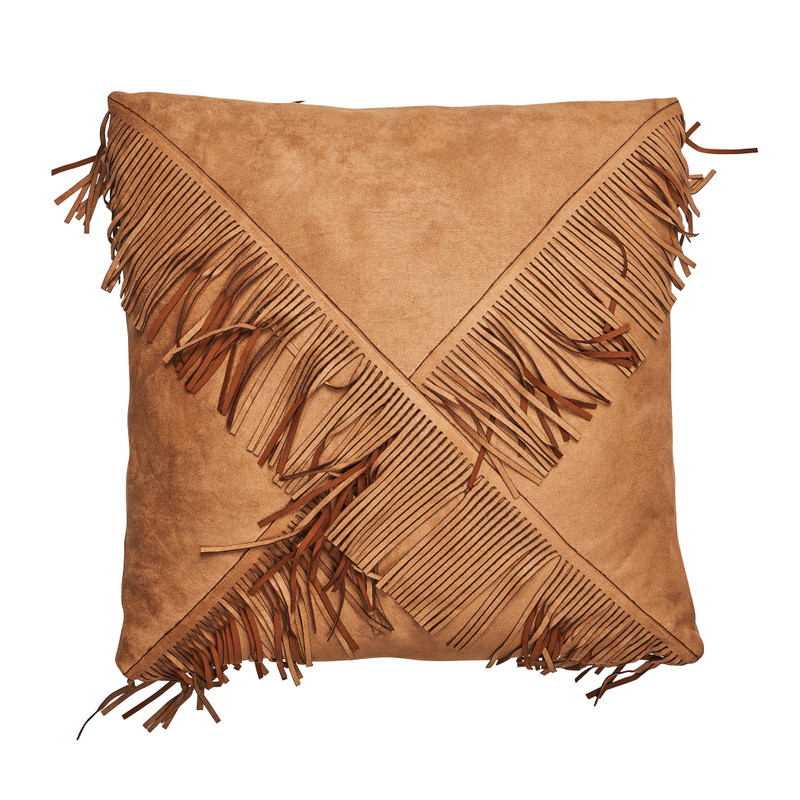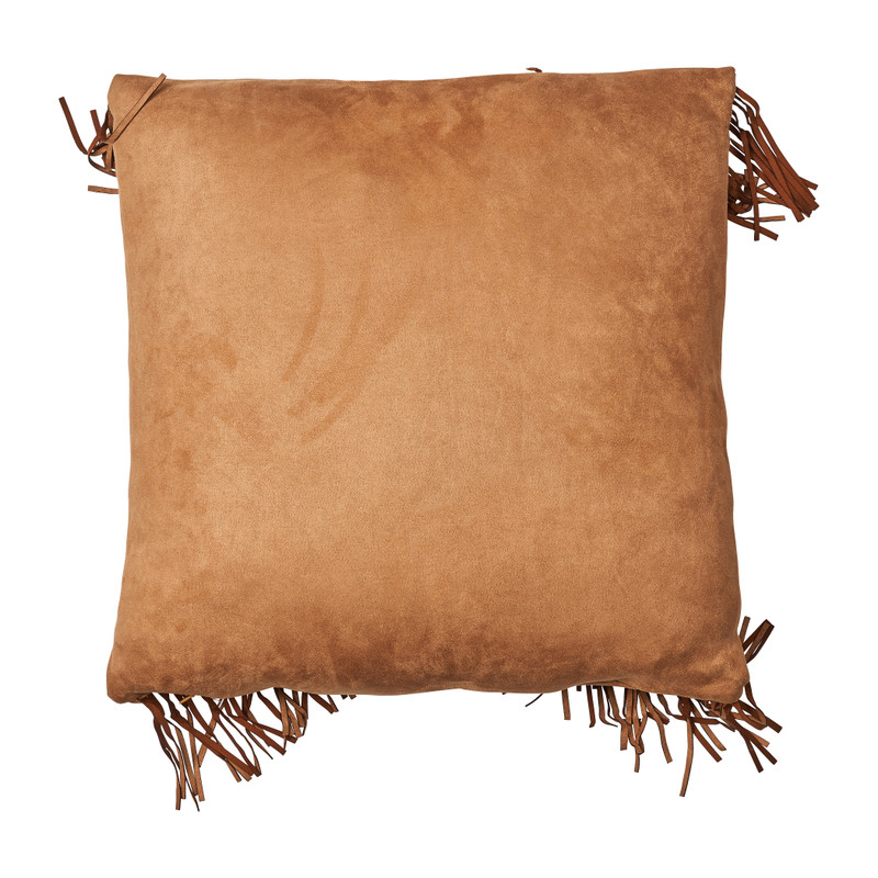 Howdy cowboy! Dit gave kussen met franjes in cowboy stijl is onmisbaar op jouw bank! Het stoere kussen heeft een suède look, wat het kussen lekker aaibaar maakt. De franjes zorgen net voor dat beetje extra. Het kussen is gemaakt van polyester. De hoes is gemaakt van katoen, is afritsbaar en kan met de hand gewassen worden. De afmeting is 45x45 cm.