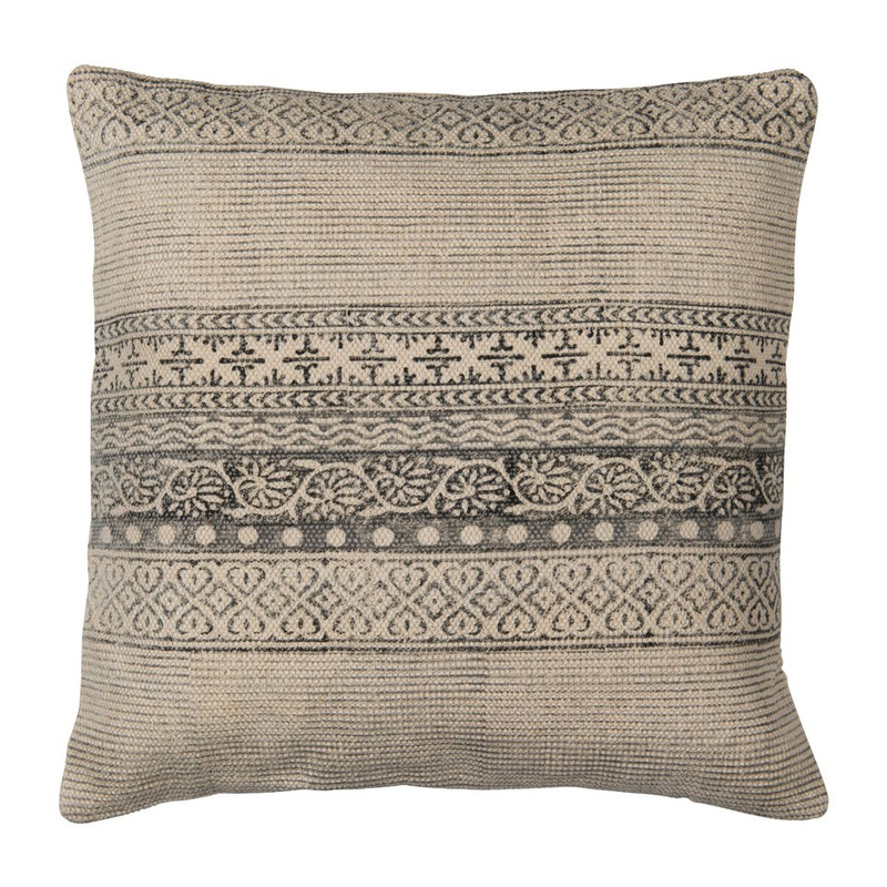 Dit kussen is een echte eyecatcher op de bank of in de loungestoel. Het strepenpatroon geeft een extra touch. De achterkant is effen van kleur en er zit een rits in de hoes zodat je deze eraf kunt halen. Handig wanneer je deze uit wilt wassen. Het kussen heeft een afmeting van 45x45 cm en is gemaakt van katoen.