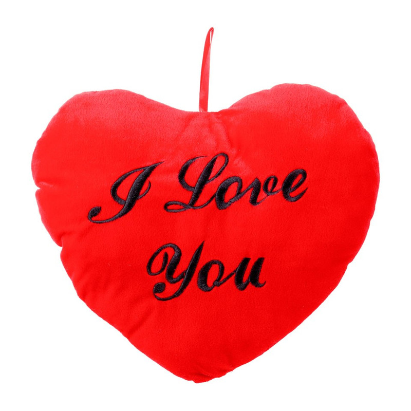 Verras jouw geliefde met dit grote rode hartvormige kussen met de tekst 'I love you'. Het kussen is gemaakt van polyester en heeft een de bovenkant een lusje waarmee je deze op kunt hangen.