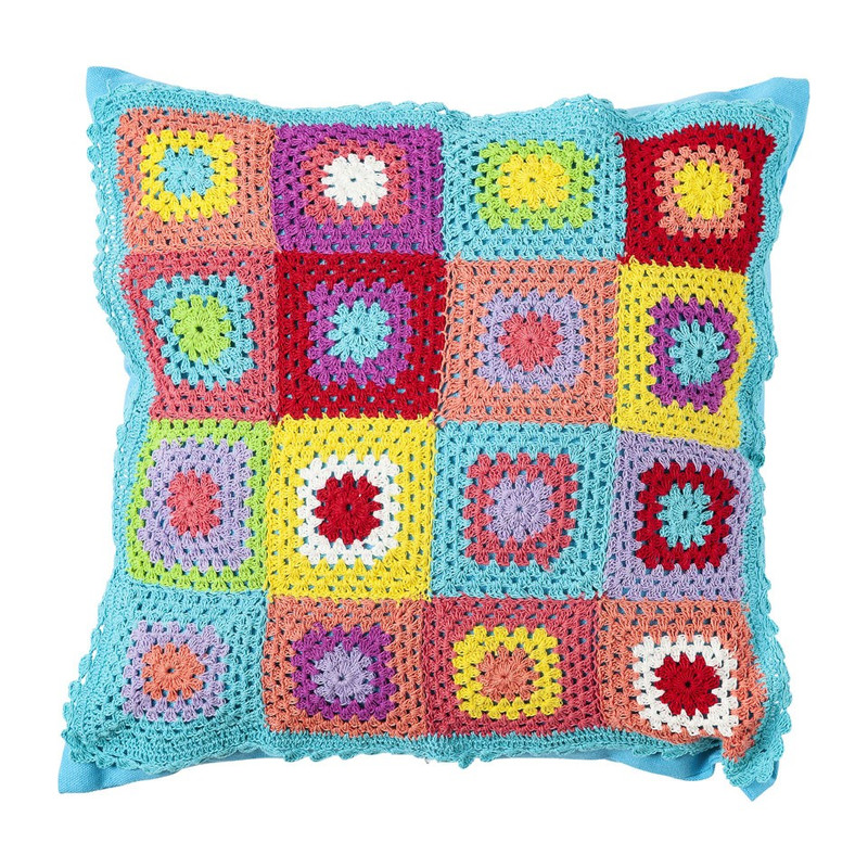 Sierkussen multikleuren gehaakt - 40x40 cm