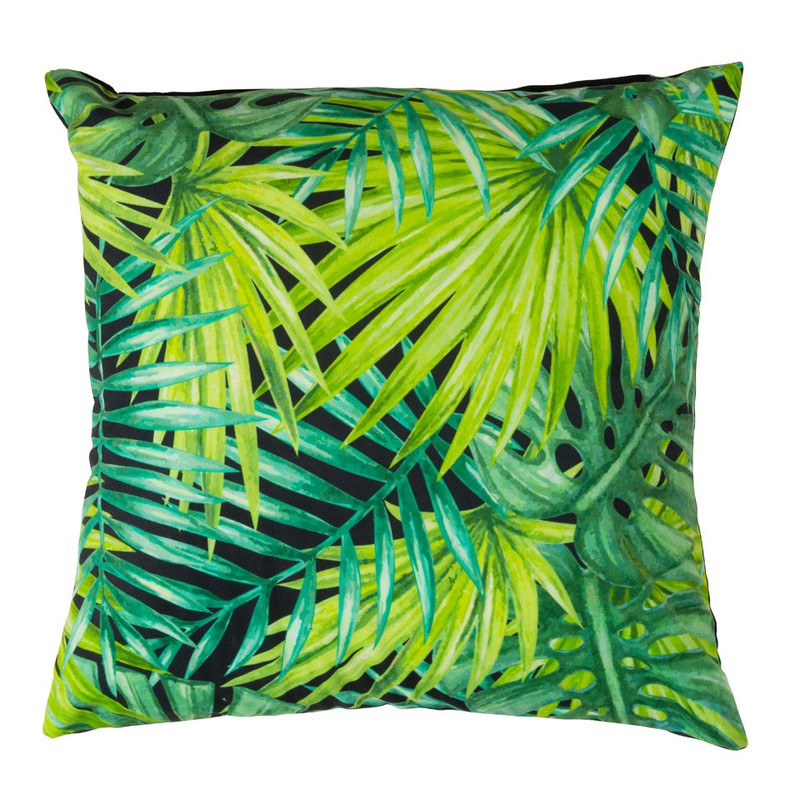 Het stevige kussen staat mooi in een botanisch interieur dankzij de natuurlijke print. De zwarte en groene tinten zorgen voor een natuurlijke, stijlvolle uitstraling. De afneembare hoes is gemaakt van polyester. De afmeting van het kussen is 45x45 cm. Leuk om dit kussen te combineren met andere natuurlijk elementen zoals cactussen, hout of kaarsen in natuurtinten.