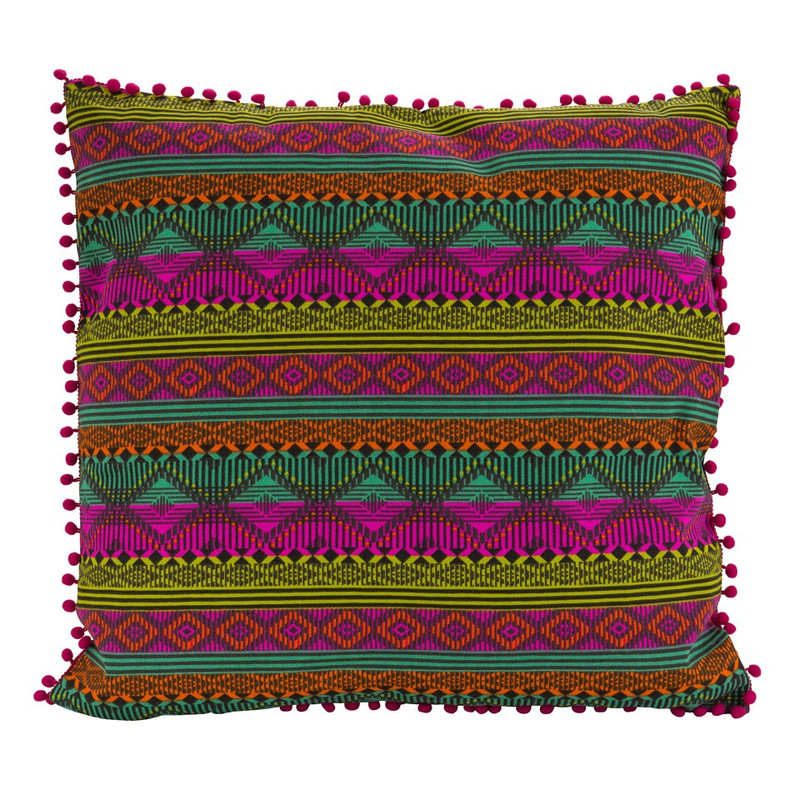 Met dit kussen haal je een kleurrijke en gezellige sfeer in huis. Het kussen heeft allemaal vrolijke kleurtjes en kleine roze bolletjes langs de zijkant. Staat ook erg leuk in de loungehoek in de tuin. Dankzij de rits die mooi weggewerkt is aan de achterkant kun je de hoes er vanaf halen. Handig wanneer je deze uit wil wassen.