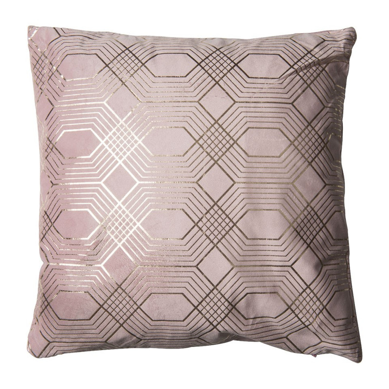 Dit kussen met grafische print is een trendy eyecatcher en heerlijk kussen voor thuis. Leg het op de bank of in de stoel. Het roze kussen heeft prachtige gouden rasterlijnen en de stof voelt zacht aan. Gemaakt van polyester en de afmeting is 45x45 cm. Koop ‘m nu het nog kan. Ook verkrijgbaar in de kleur groen.