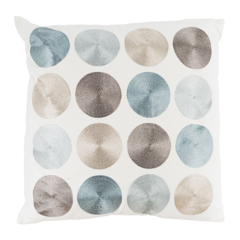 Het prachtige kussen stip geborduurd is een trendy eyecatcher en een heerlijk kussen voor thuis. Je legt het op de bank of in de stoel. Dit is een fijn kussen met een mooie uitstraling. Het heeft prachtig geborduurde stippen in metallic kleuren. De afmeting van het kussen is 45 x 45 cm. Het is gemaakt van katoen, de binnenzijde van polyester. Het voelt heerlijk aan. Koop ‘m nu het nog kan.