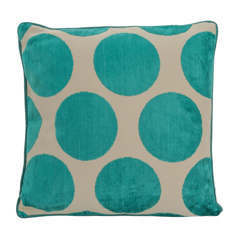 Kussens geven een interieur een warme uitstraling. Dit mooie crèmekleurige kussen met groene cirkels zal super stijlvol staan op jouw bank, stoel of poef. Het kussen heeft een afmeting van 45x45 cm en bestaat 65% uit viscose en 35% uit katoen. De kussenhoes is van het kussen af te halen middels de rits aan de zijkant.