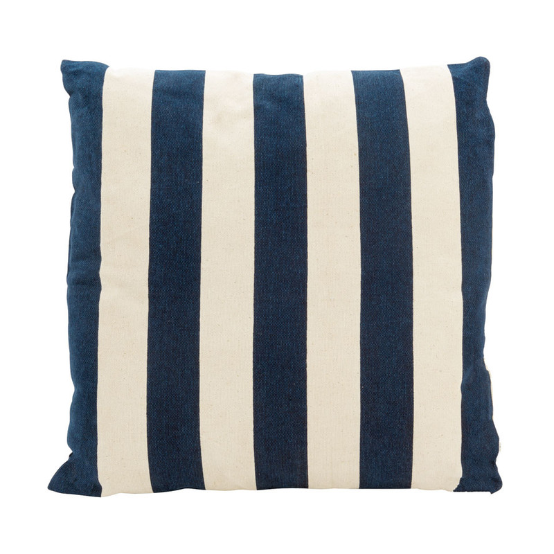 Fleur de woonkamer op met dit hippe blauwe gestreepte kussentje. Leg 'm op de bank of in jouw favoriete stoel om er lekker tegenaan te kruipen. Naast comfort geeft dit kussen ook sfeer aan de ruimte waarin je deze neerlegt. Het kussen is gemaakt van katoen en heeft een afmeting van 45x45 cm. Ook zit er een rits aan de zijkant zodat je de hoes eraf kunt halen om deze te reinigen.