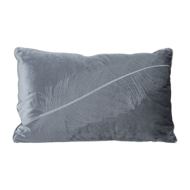 Dit grijze kussen met veer is heerlijk zacht. Het kussentje is gemaakt van polyester en voelt super zacht en aaibaar aan. Leuk als sierkussentje op de bank of op bed.