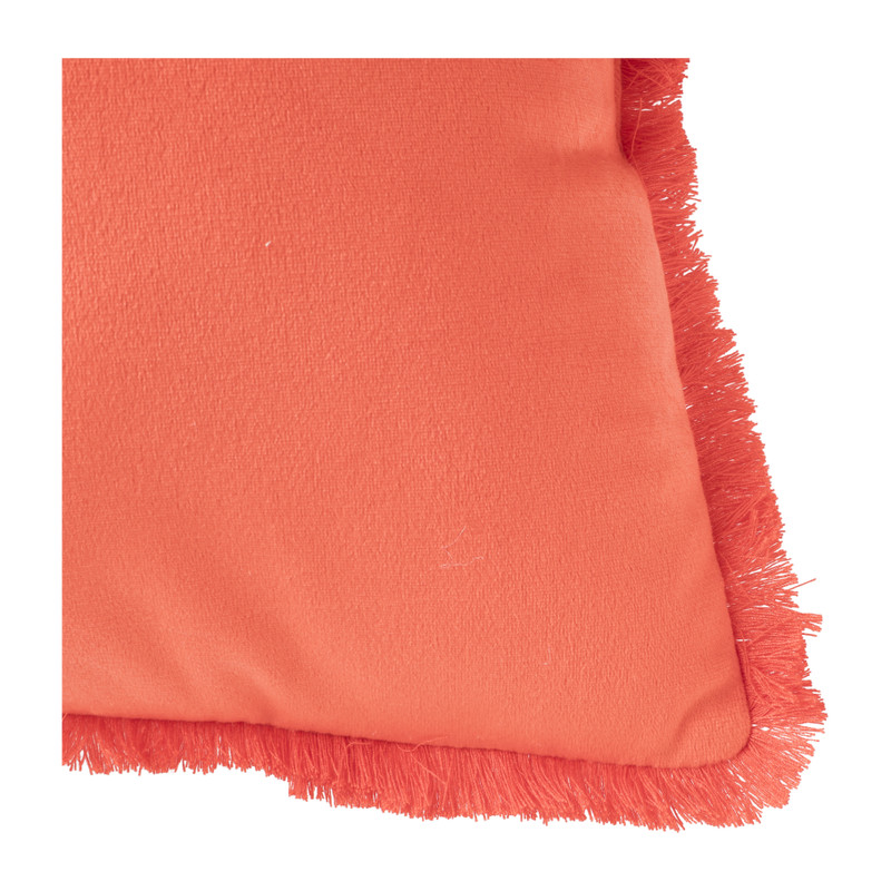 Van dit felle velvet kussen met franjes wordt je meteen vrolijk. Met zijn formaat van 45x45 cm, opvallende kleur oranje en franjes aan de zijkant is dit kussen de perfecte keuze om je woonruimte een kleurrijke touch te geven. Het fluweelzachte materiaal voelt heerlijk aan en geeft een elegante uitstraling aan elke ruimte. Het kussen heeft geen ritssluiting en is niet wasbaar, kleine vlekken kunnen worden verwijderd met een vochtige doek.
