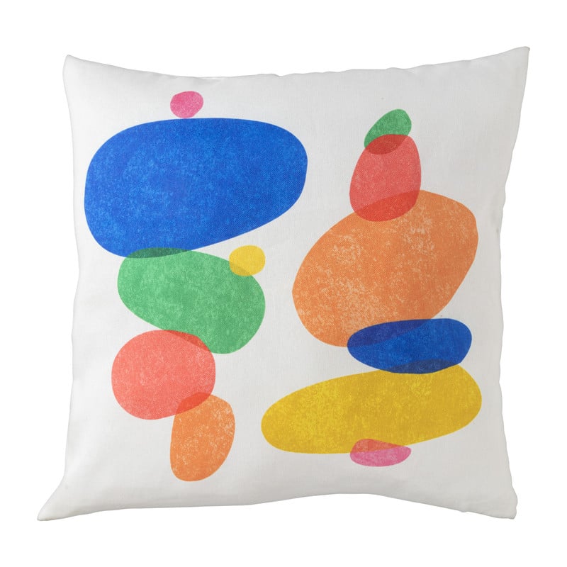 Eenvoudig kleur toevoegen aan je interieur? Verander je kussen met deze electische kussenhoes. De hoes bevat een kleurrijke print van gestapelde vormen. Mix & match met sierkussens in felle kleuren.