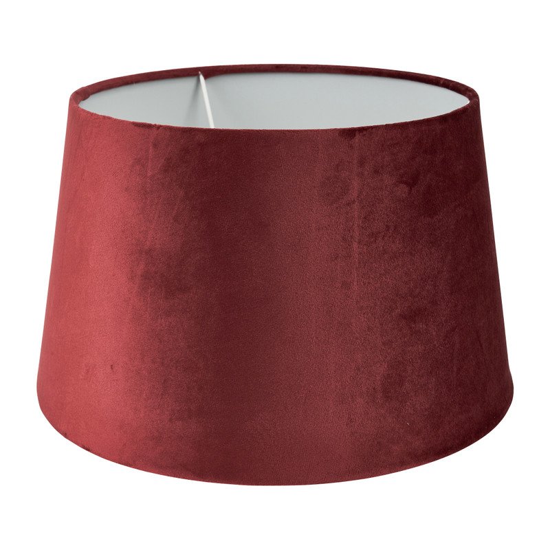 Aan of uit, deze velvet lampenkap staat altijd mooi. De lamp heeft een luxe uitstraling door de zachte fluwelen buitenzijde in de kleur bordeauxrood. De binnenkant is wit en netjes afgewerkt. Combineer de lampenkap met een simpele houten standaard of pak uit en ga voor een bijzondere apenstandaard. Geschikt voor lampen van maximaal 60 Watt.