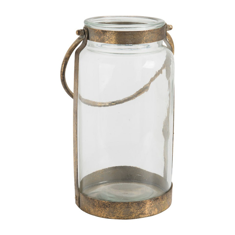 Creëer sfeer in je huis met deze lantaarn van glas en gouden metalen details. Het hengsel zorgt ervoor dat je de lantaarn gemakkelijk kunt verplaatsen. Je kunt in de lantaarn veilig kaarsen branden. Zo creëer je in een handomdraai een romantische sfeer in huis of in de tuin. De afmeting van de lantaarn is 17x30 cm en hij is gemaakt van glas en metaal.