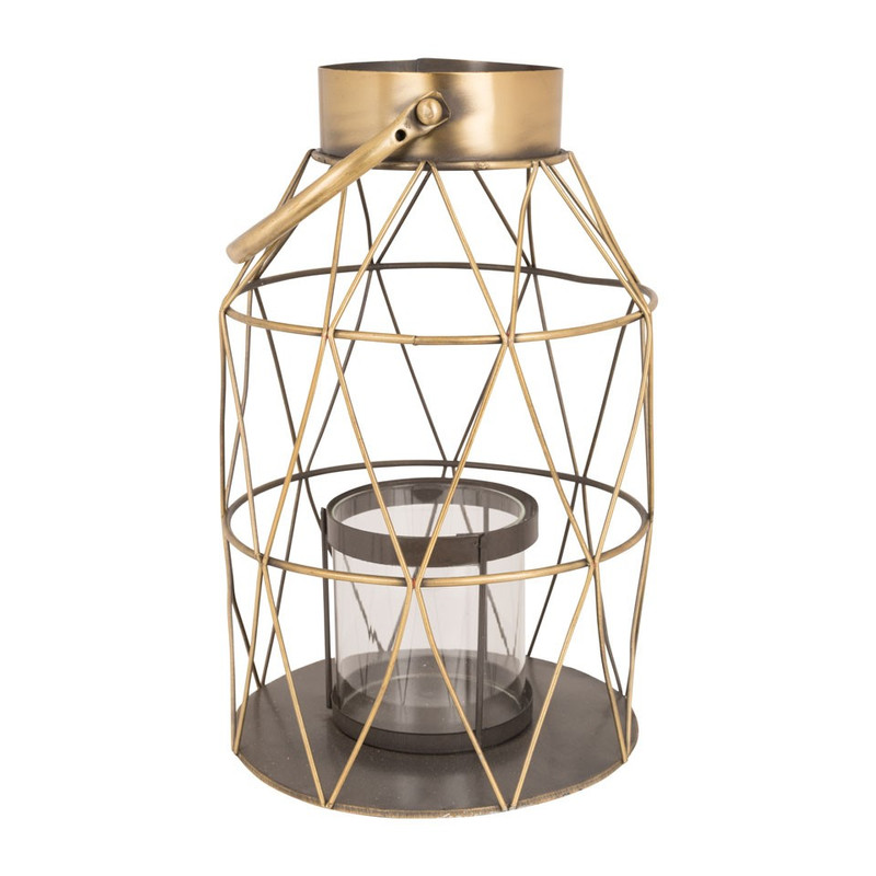 De metalen woontrend is één van de populairste trends van dit moment. Je kunt metalen accessoires namelijk binnen bijna alle woonstijlen toepassen. Zo ook deze lantaarn van metaaldraad. Hij heeft een diameter van 18 centimeter en is 27 cm hoog. Binnenin zit een glaasje waarin je veilig een theelicht of klein kaarsje kunt stoppen en aansteken. Maar ook zonder brandend kaarsje is de lantaarn een leuke woonaccessoire. * Geometrisch ontwerp * Eyecatcher in je interieur * Glazen theelichthouder binnenin * Hoogte: 27 cm * Diameter: 18 cm