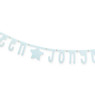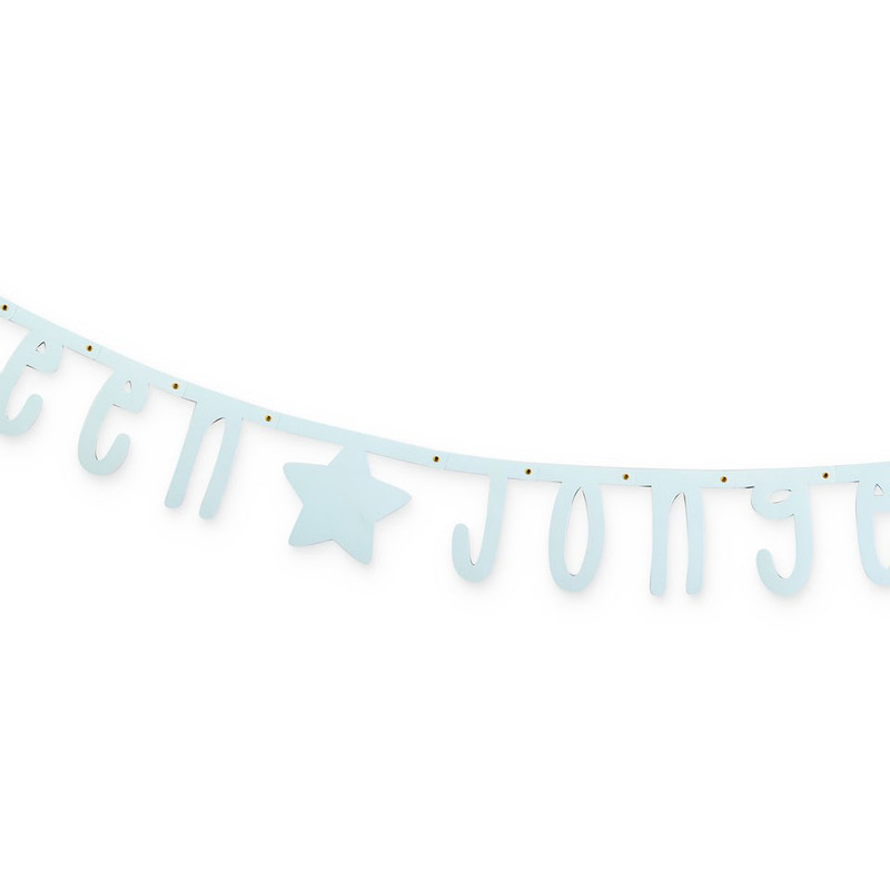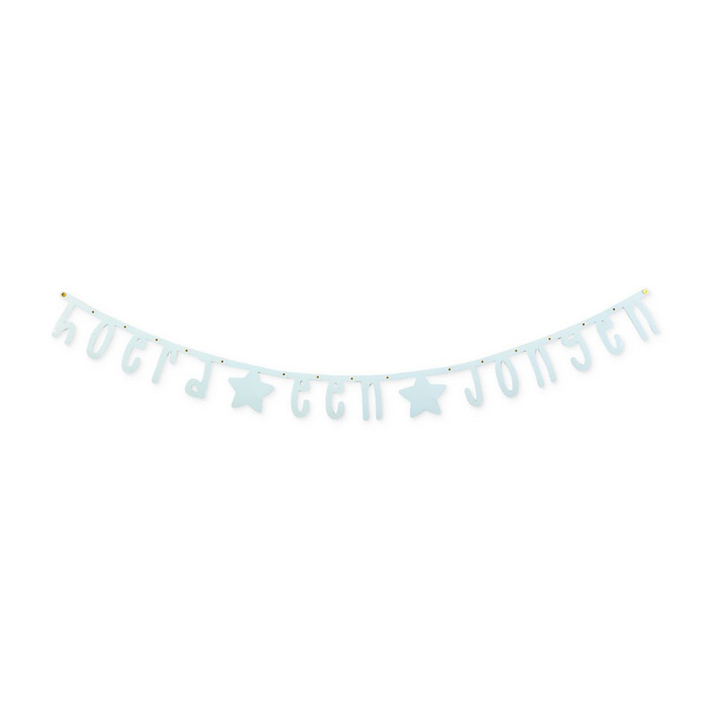 Hang deze slinger voor het raam, zodat iedereen kan zien dat er een jongen geboren is. De slinger heeft een lengte van 130 cm en is gemaakt van papier. De letters zijn lichtblauw gekleurd. Combineer met andere blauwe accessoires om er een echt feestje van te maken.