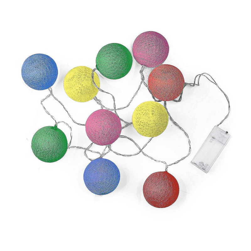 Lichtslinger cottonball guirlande - multikleur - 10 lampjes