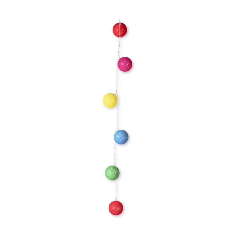 Deze lichtslinger met gekleurde cottonballs brengt sfeer en gezelligheid in je interieur. Het verlichtingssnoer is 165 cm lang en is voorzien van 10 LED-lampjes. De lampjes werken op 2 AA batterijen, je hebt dus geen stopcontact nodig.