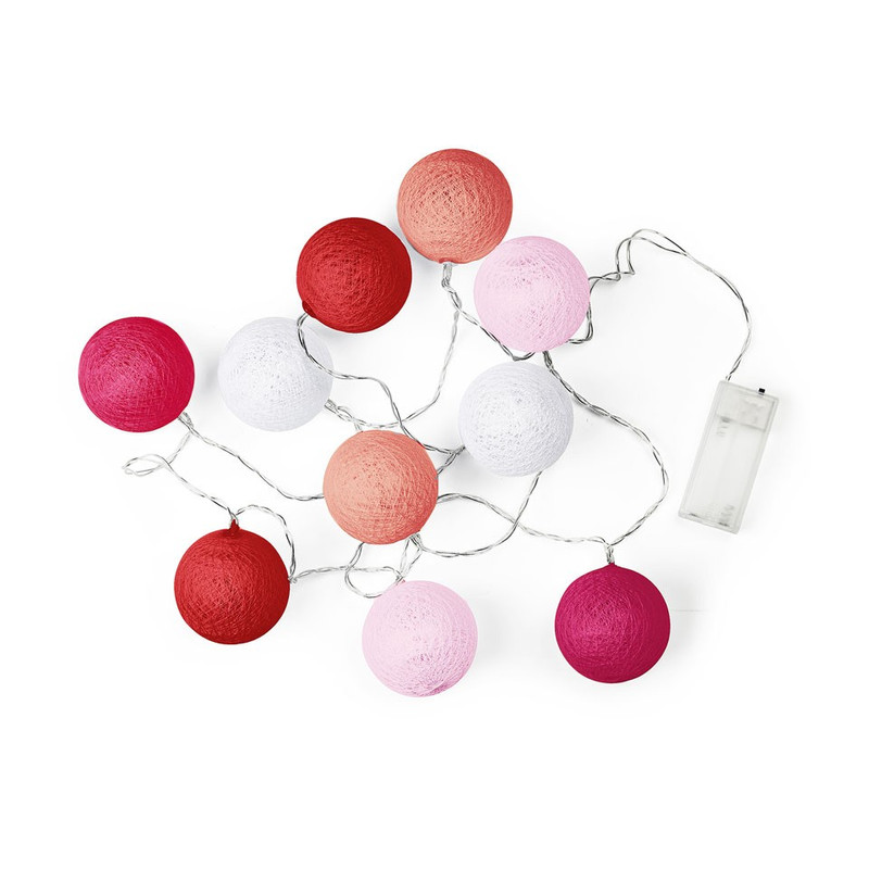 Lichtslinger cottonball guirlande - rood/roze - 10 lamps