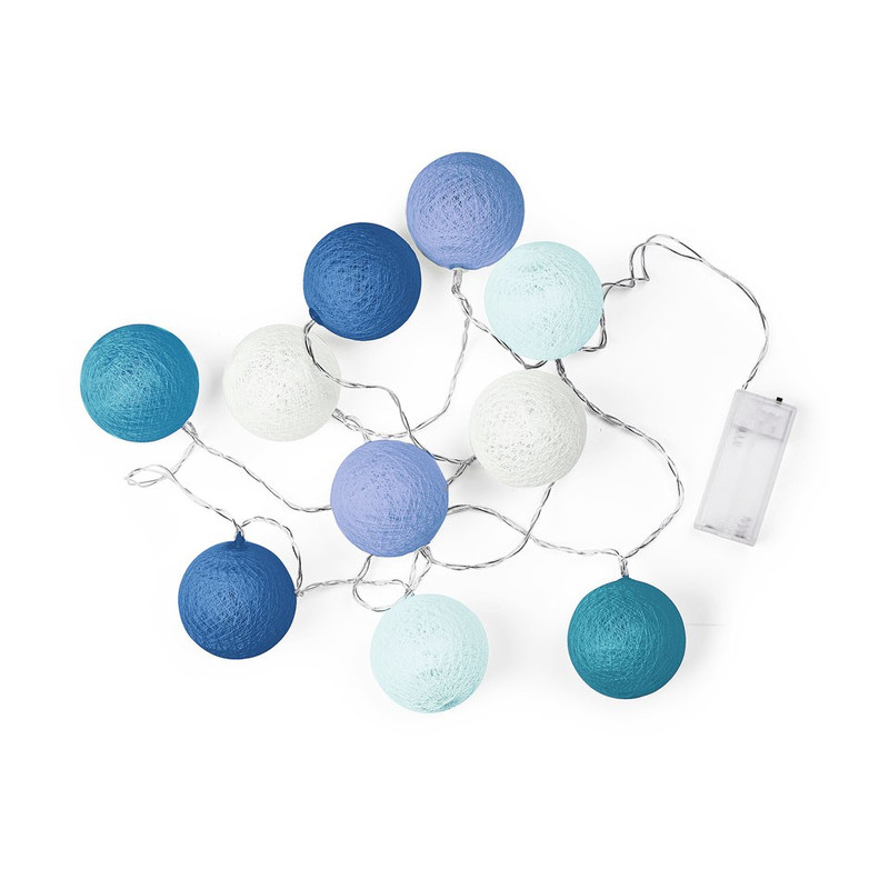 Lichtslinger cottonball guirlande - wit/blauw - 10 lampjes