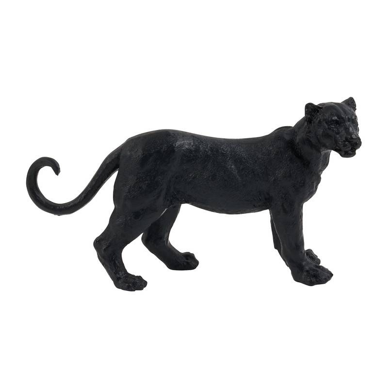 Dit robuuste luipaard zal de eyecatcher zijn in elk interieur. Het luipaard heeft een krachtige houding en mooie details in zijn gezicht en poten. De effen zwarte kleur maakt het gemakkelijk om dit beeldje te combineren met andere decoratiestukken. De luipaard is 20 cm hoog, 11 cm lang en 5 cm breed. Het is gemaakt van Polyresin. Een sterk mengsel van gemalen steen en vloeibaar hars. Dit materiaal is makkelijk te onderhouden en waterbestendig.