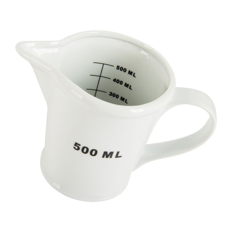 Deze maatbeker is niet alleen super handig maar ook nog een erg stijlvol. Dit exemplaar is gemaakt van porselein en heeft een inhoud van 500 ml. Aan de binnenkant staan streepjes zodat je het precies af kunt meten.
