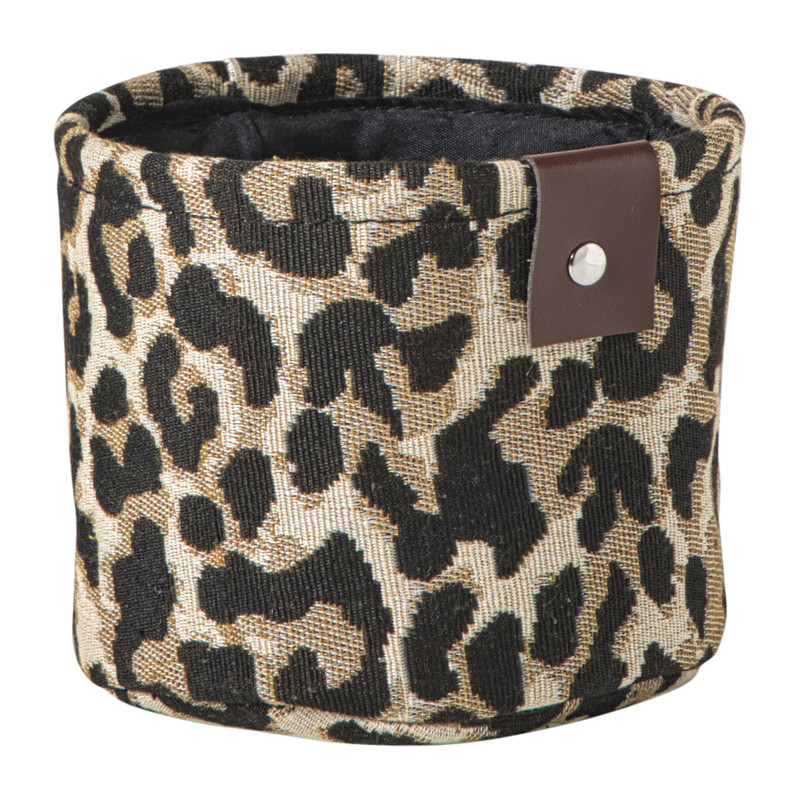 Deze ronde mand met luipaardprint is niet alleen super handig, maar ook een echte eyecatcher! Met een compact formaat van 14x11 cm is hij ideaal voor het opbergen van kleine spulletjes zoals sieraden, make-up of bureauaccessoires.