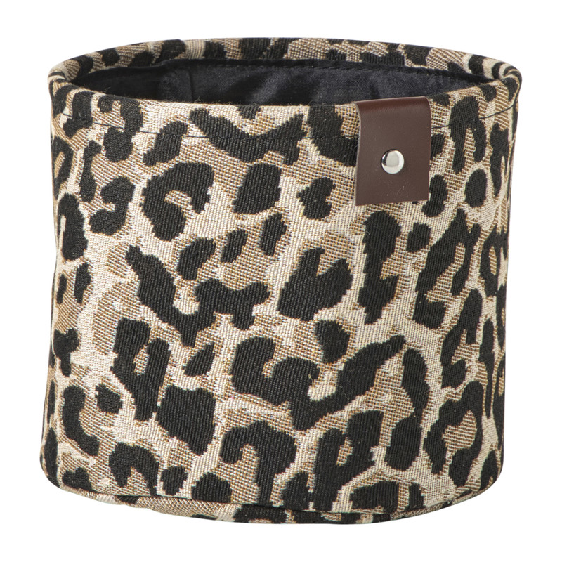 Deze ronde mand met luipaardprint is niet alleen super handig, maar ook een echte eyecatcher! Dankzij het royale formaat van 18x15 cm berg je moeiteloos van alles op, van hobbyspullen tot speelgoed.