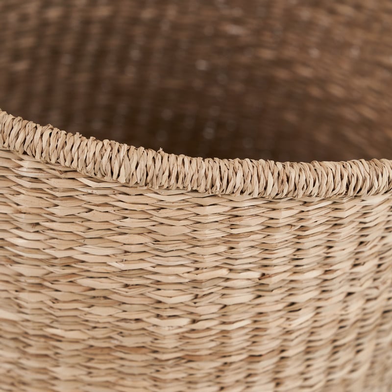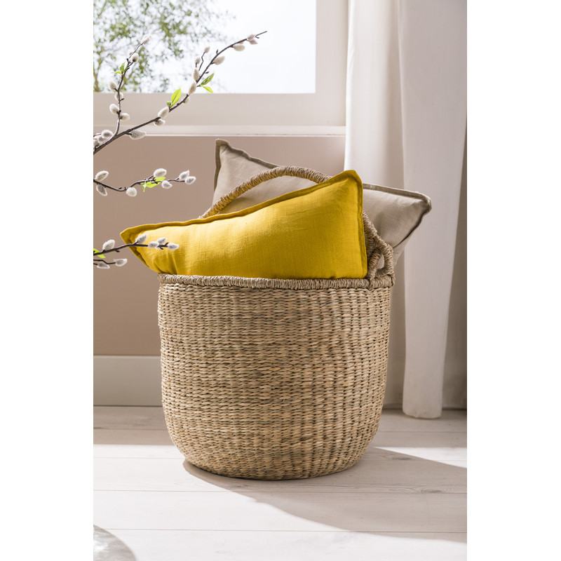 Manden heb je nooit genoeg. Voeg snel deze stijlvolle mand toe aan jouw collectie. Met de mand haal je troep uit het zicht. Bovendien ziet de mand, gemaakt van zeegras, er natuurlijk en hip uit. Door het hengsel kan je mand makkelijk verplaatsen. Handig voor bij het opruimen! De mand is 50 cm hoog en de diameter is 35 cm.