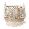 Zeg maar dag tegen rondslingerend speelgoed van de kinderen! Met deze manden ruim je alles netjes op. De manden zien er ook nog eens leuk uit dankzij de geknoopte macramé rand. De afmeting is ⌀40x40 cm. Verkrijgbaar in meerdere maten.