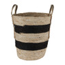 Deze mand is handig voor het opbergen van plaids, kussentjes en speelgoed. De opbergmand heeft zwarte strepen en is gemaakt van riet. Door de hengsels makkelijk te verplaatsen. De afmeting van de rieten mand is ⌀32x38 cm. Verkrijgbaar in meerdere maten.