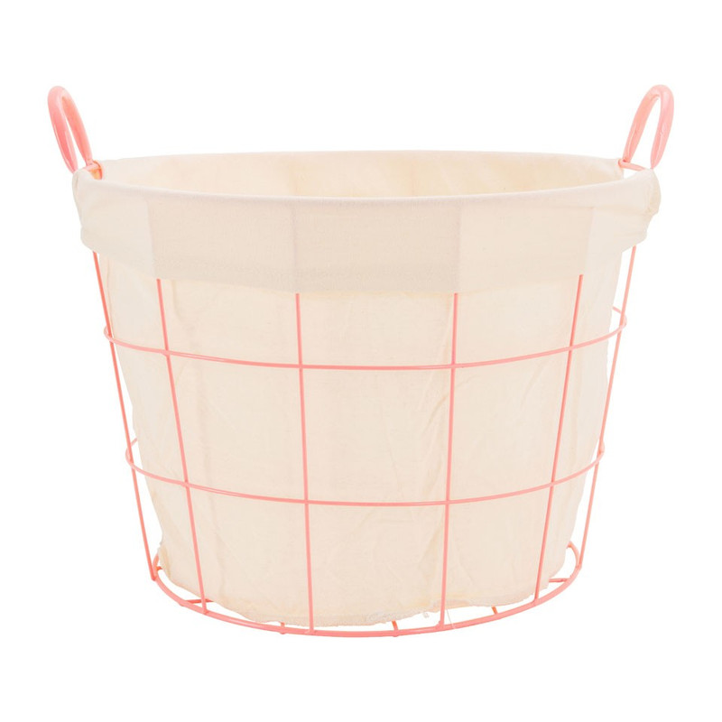 Berg de was op in deze leuke industriële wasmand in een roze kleur. De mand heeft een diameter van 44 cm en een hoogte van 32 cm. De voering is gemaakt van katoen en is wit van kleur. Dankzij de handvaten kun je deze wasmand gemakkelijk oppakken. Naast de was kun je deze mand ook prima gebruiken ter decoratie in de woonkamer. Gebruik deze dan bijvoorbeeld als kranten-/tijdschriftenbak.