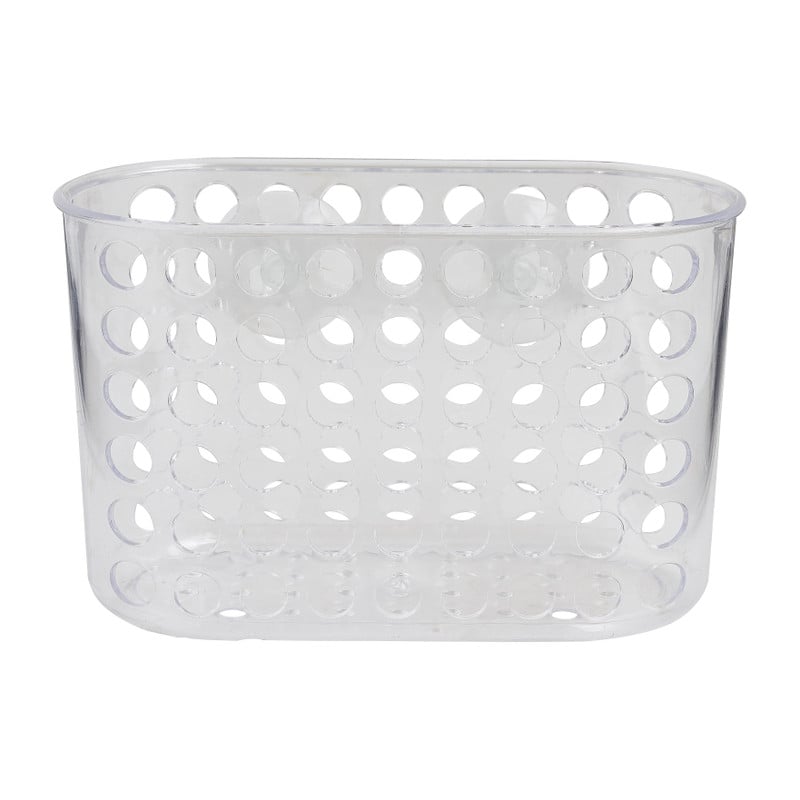 Door dit badkamermandje heb jij jouw shampoo en doucheolie altijd bij de hand. Super handig! Maak het oppervlak in de douche schoon en droog en druk het met mandje tegen de muur aan. Door de zuignappen blijft de mand stevig hangen zonder gaatjes in de muur te maken. Het transparante mandje is gemaakt van kunststof en heeft een hoogte van 8.5 cm, een breedte van 15.5 cm en een diepte van 8.5 cm.