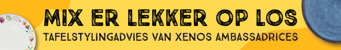 In de maanden maart, april en mei mixen we er lekker op los bij Xenos. Blaas je tafelstyling nieuw leven in door je oude servies te matchen met nieuw servies. Bij Xenos vind je alles voor een vrolijke tafelaankleding. Mix en match verschillende serviezen voor een unieke tafel. Vier weken lang geven vier Xenos ambassadrices stylingadvies in onze winkels verspreid door het land. Ze laten je zien hoe je een oude serviesset matcht met een aantal nieuwe items. Want weggooien is zonde! Ben je op zoek naar inspiratie en kan je wel wat advies gebruiken? Kijk dan snel wanneer er een ambassadrice bij een winkel bij jou in de buurt aanwezig is.