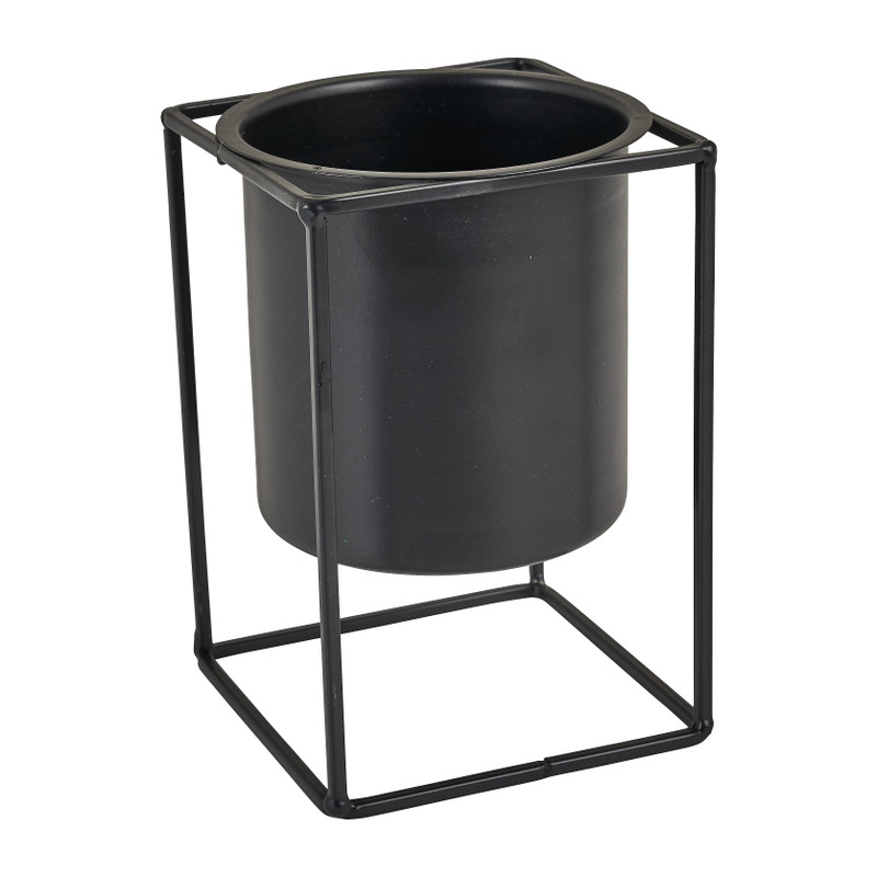 Plantenpotten in een standaard zijn helemaal on-trend. Deze industriële plantenstandaard is gemaakt van zwart metaal. De standaard is 14 cm hoog. De pot heeft een diameter van 11 cm en een hoogte van 11 cm. Combineer de plantenpot met andere metalen plantenpotten om een echte thuis jungle te creëren.