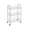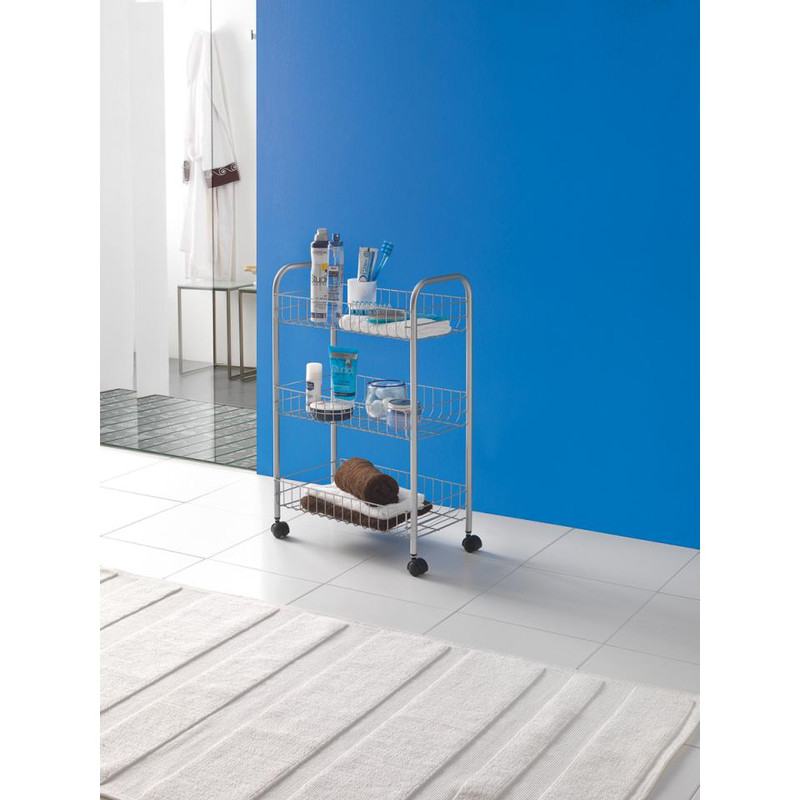 De Metaltex Lugano keukentrolley met 3 etages kan allerlei dingen bevatten: voedsel, dranken, reinigingsproducten.. Je kunt deze keukenorganiser ook in je badkamer gebruiken om je wasmiddelen of zeep en shampoos op te bergen. Je kan de Lugano verder ook in de garage gebruiken om tuinproducten of andere spullen in op te bergen. Een nieuw patent maakt het aansluiten van de verschillende delen zonder werktuig gemakkelijk. Dankzij de wieltjes is dit rek snel verplaatsbaar. De afmetingen zijn 41x26x64 cm. De Metaltex Lugano heeft een harde, zilvere Polytherm coating.