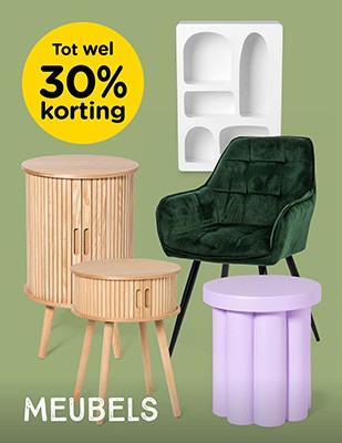 Op zoek naar betaalbare meubels met een stijlvolle uitstraling? Bekijk dan de meubel acties van Xenos! In onze sale scoor je de leukste meubels met flinke korting – van trendy bijzettafels en stoere kasten tot comfortabele stoelen en praktische opbergers. Perfect om jouw interieur een upgrade te geven zonder je budget te overschrijden. Shop snel jouw favorieten, want onze meubel acties zijn tijdelijk en op = op!