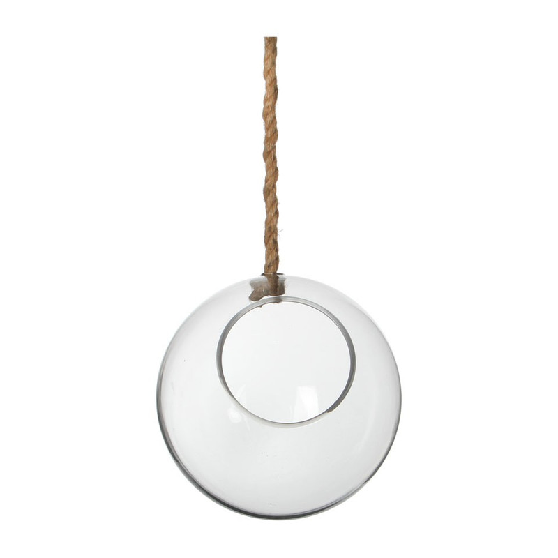 Deze hangende bolvaas is trendy en helemaal naar eigen wens in te richten. Plantjes, zoals de Epifyten (luchtplantjes), staan heel gaaf in hangende vaas aan jouw plafond. Maar ook andere decoraties zullen niet misstaan, zoals decoratiezand of een lichtslinger. Laat je creativiteit de vrije loop met deze ronde hangvaas. De vaas heeft een diameter van 22.5 cm.