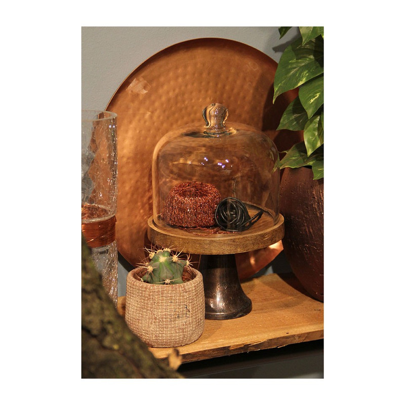 Hippe glazen stolp op koperkleurige voet. Perfect om jouw mooiste decoraties in te showen. Zet er bijvoorbeeld een lichtsnoertje, een klein plantje of een kaars in! Er zijn allerlei manieren om deze stolp er leuk uit te laten zien. Met een stolp kun je lekker veel variëren in je interieur. Leuk!
