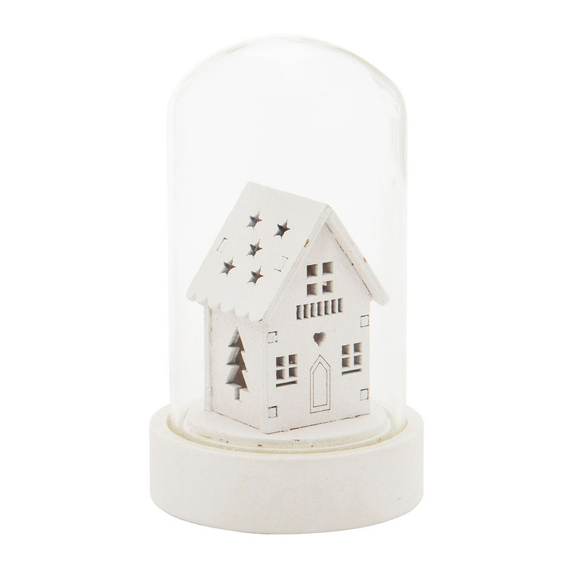 Deze leuke mini stolp is een sfeermaker in huis. In het glazen stolpje staat een lieflijk kersthuisje. het huisje heeft een prachtige versiering. Het leuke is dat er ook lampjes in zitten. Het vormt een sfeervol geheel, zet de stolp op de vensterbank, onder de kerstboom of een andere opvallende plek. Kerst kan beginnen met deze leuke stolp. Er past 1 CR2032 batterij in, die wordt meegeleverd zodat je 'm meteen kan gebruiken.