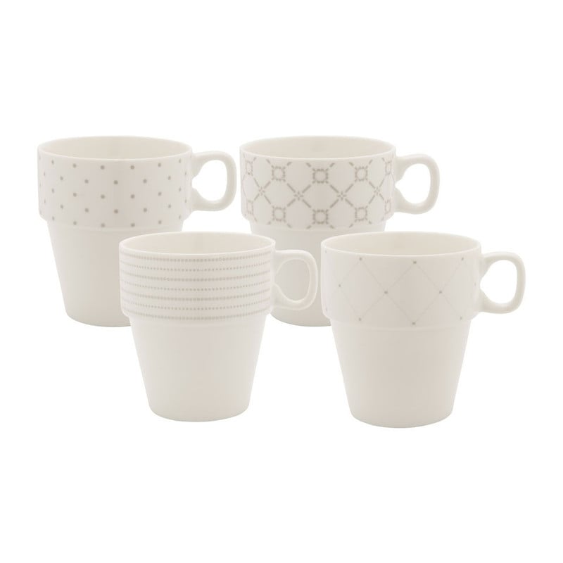 Deze mokken met subtiele grijze print vormen een leuke set! De mokken hebben per stuk een ander stijlvol design, waardoor het een speelse combinatie wordt. Serveer jouw gasten een lekkere kop thee, koffie of melk in deze set. De mokken hebben een inhoud van 30 cl en zijn geschikt voor de vaatwasser en magnetron.