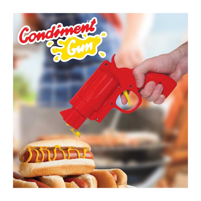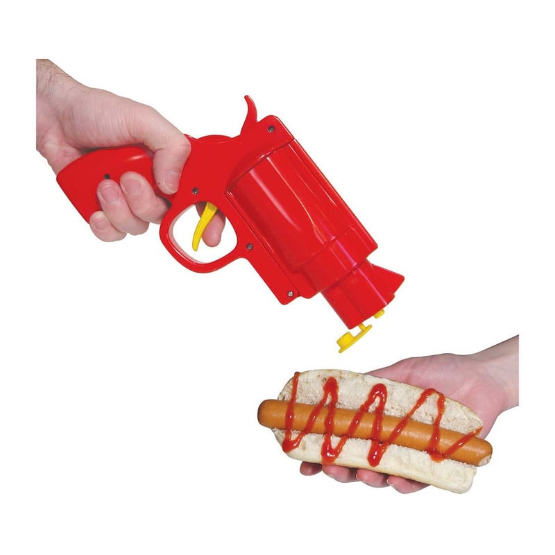 Handen omhoog of ik schiet! Maak je etentje extra spannend met dit saus pistool. Vul gewoon de twee meegeleverde cartridges met jouw favoriete saus en laad je pistool. De pistool sausdispenser is leuk om te gebruiken tijdens barbecues, tijdens het ontbijt of zelfs op een zaterdagavond voor bij de tv. Het is het ultieme keuken design cadeau. Voor het gebruik eerst even afwassen.