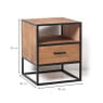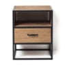 Het nachtkastje is gemaakt van MDF en metaal, wat het nachtkastje een industriële uitstraling geeft.