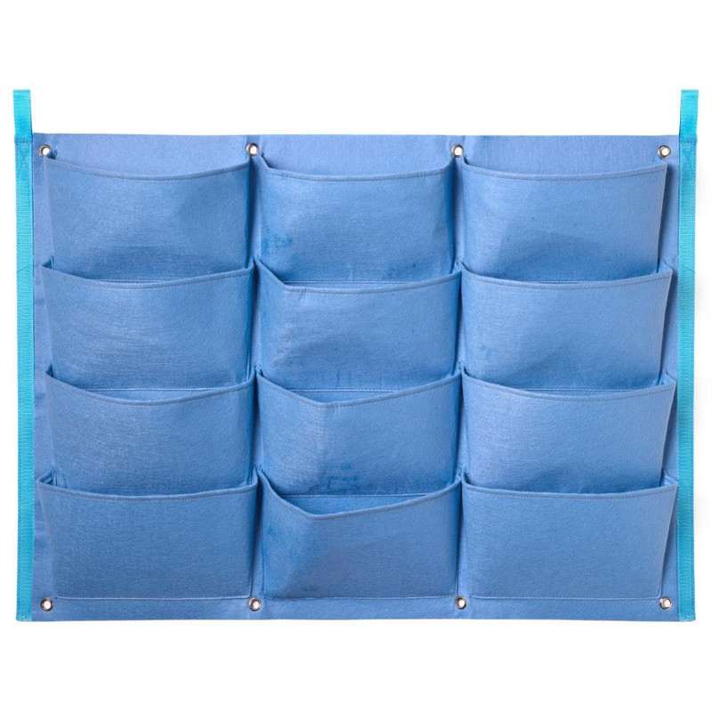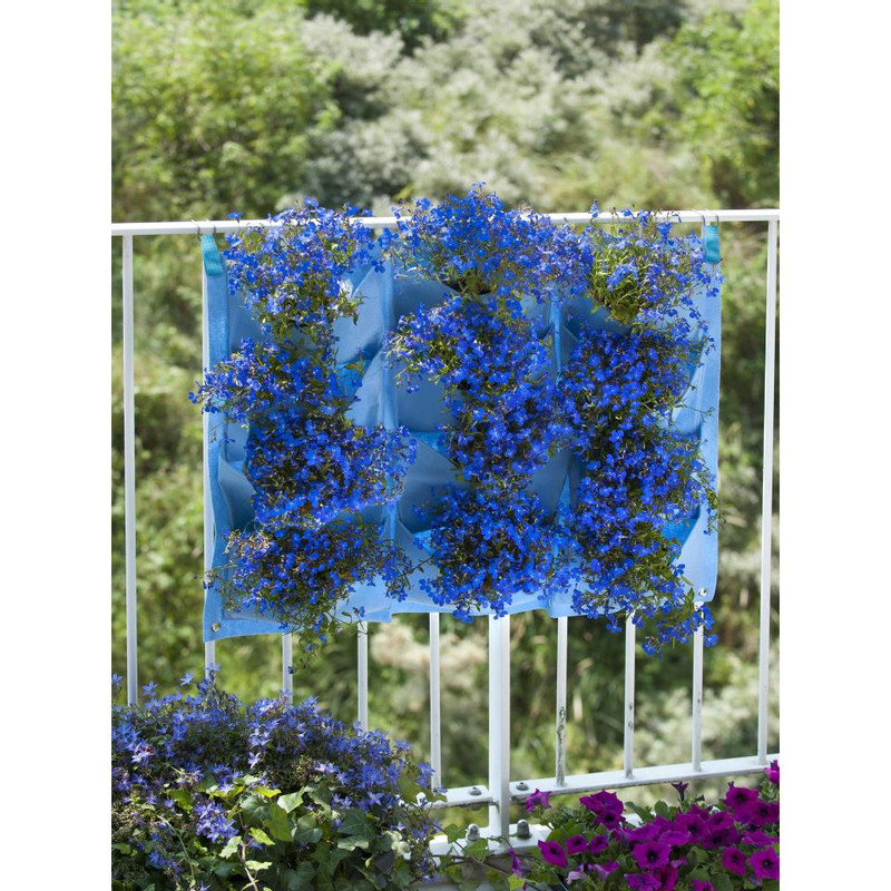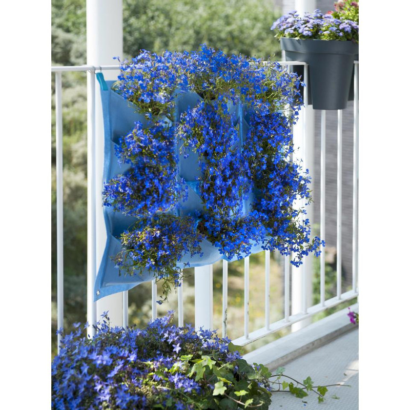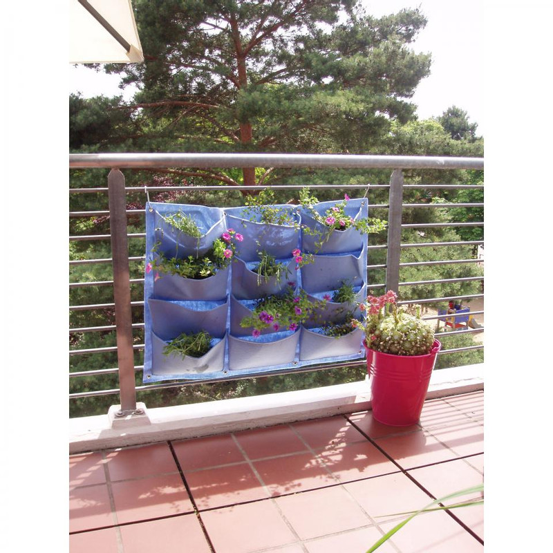 Deze blauwe plantentas van Nature is gemaakt van vilt en heeft 12 vakken (15 x 26 cm). Geschikt voor verticaal tuinieren. Elk vak heeft een transparante folielaag aan de binnenzijde zodat het gietwater niet direct wegloopt. Micro-perforaties in het folie zorgen er voor dat het water niet in de tas blijft staan. De tas is voorzien van ogen voor een gemakkelijke bevestiging aan de muur. Afmeting plantentas: H 62x82 cm. Afmeting vak: 15x26 cm.