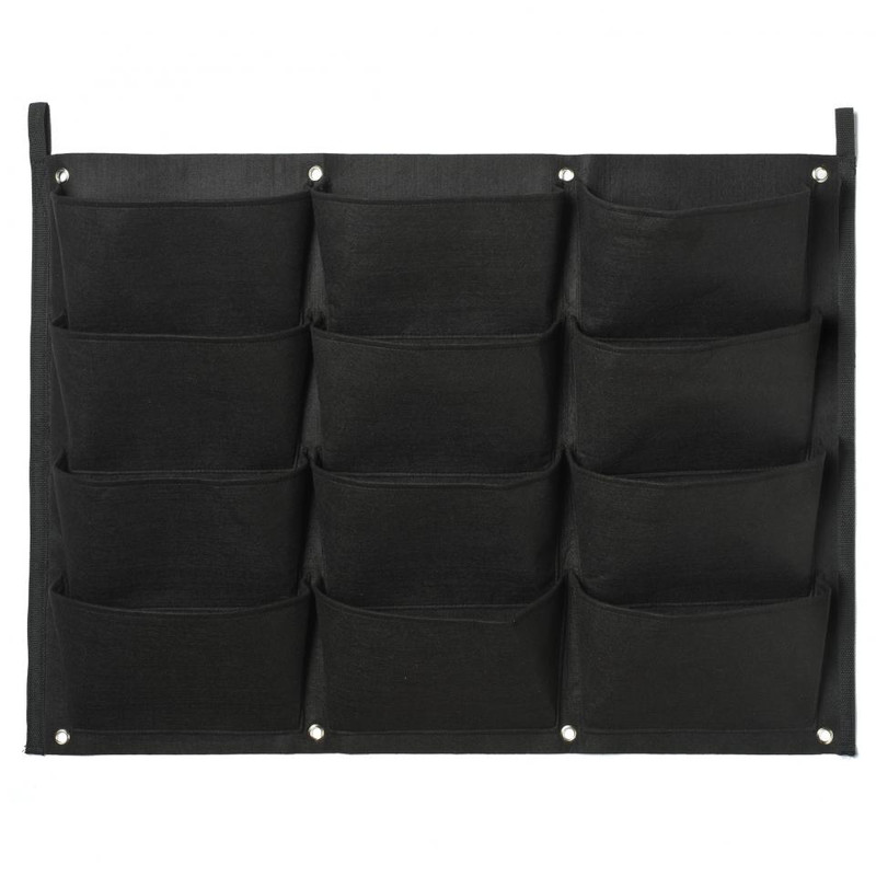 Deze zwarte plantentas van Nature is gemaakt van vilt en heeft 12 vakken (15 x 26 cm). Geschikt voor verticaal tuinieren. Elk vak heeft een transparante folielaag aan de binnenzijde zodat het gietwater niet direct wegloopt. Micro-perforaties in het folie zorgen er voor dat het water niet in de tas blijft staan. De tas is voorzien van ogen voor een gemakkelijke bevestiging aan de muur. Afmeting plantentas: H 62x82 cm. Afmeting vak: 15x26 cm.