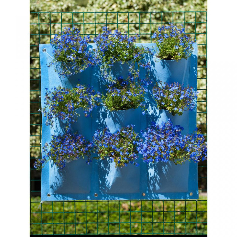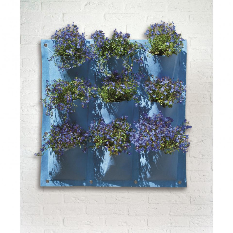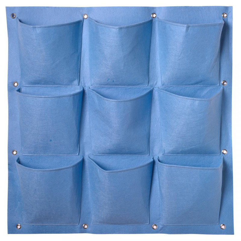 Deze blauwe plantentas van Nature is gemaakt van vilt en heeft 9 vakken (20 x 19 cm). Geschikt voor verticaal tuinieren. Elk vak heeft een transparante folielaag aan de binnenzijde zodat het gietwater niet direct wegloopt. Micro-perforaties in het folie zorgen er voor dat het water niet in de tas blijft staan. De tas is voorzien van ogen voor een gemakkelijke bevestiging aan de muur. Afmeting plantentas: H 72x72 cm. Afmeting vak: 20x19 cm.