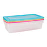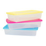 De kunststof opbergboxen hebben een deksel in de kleuren geel, blauw en roze. De inhoud van de box is 30 liter. De boxen zijn 70x39x15 cm groot. De kunnen makkelijk op elkaar gestapeld worden, maar ze passen ook in elkaar.