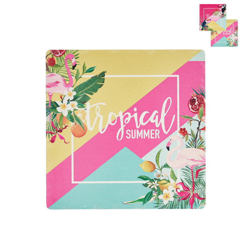 Bescherm je tafel tegen krassen en kringen met deze vrolijke glasonderzetter. De onderzetter heeft een jungle print met de tekst "Tropical summer". De onderzetter is gemaakt van aardewerk en de onderkant van kurk, zodat je tafel goed beschermt is. De onderzetter heeft een afmeting van 10.8x10.8 cm. Let op: er zijn twee varianten verkrijgbaar. Er is vooraf NIET te bepalen welke variant je thuis krijgt.