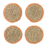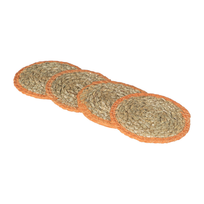 Stay hydrated! Serveer heerlijk verkoelende versnaperingen deze zomer, maar voorkom kringen op je tafel met deze deze vrolijke geweven onderzetters. Deze handige onderzetters hebben een fleurige oranje rand en zijn gemaakt van zeegras. De onderzetters hebben een diameter van 10 cm en komen in een set van 4.