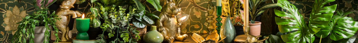 Een combinatie van elegantie en natuurlijke frisheid. Combineer gouden accessoires met weelderig groene kunstplanten in jouw interieur. Mix er op los!