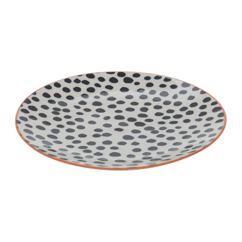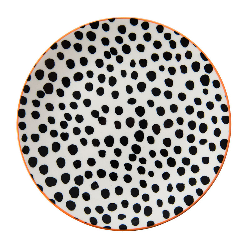 Ontbijten in stijl doe je met dit leuke bordje uit de Pongo serie. Het ontbijtbord heeft een diameter van 22 cm en is gemaakt van porselein. De oranje rand in combinatie met de zwarte stipjes geeft een leuk effect. Combineer met andere artikelen uit de Pongo serie om er een mooi geheel van te maken.